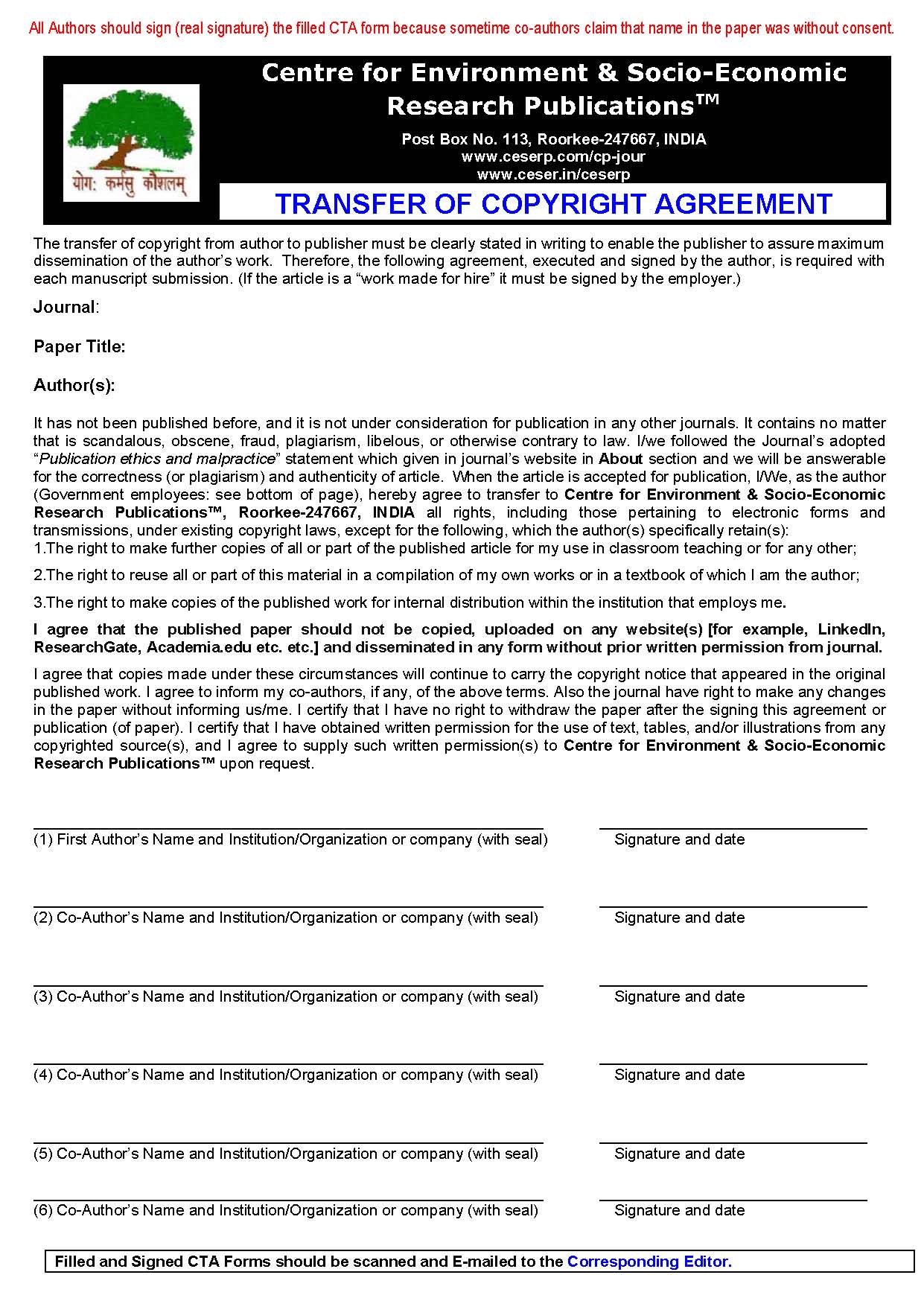 The journal first priority of Format is LaTeX. However, author(s) are also welcome to submit their paper in Microsoft Word format. The journal Format available here for Download. Download: LaTeX Style Format available here Microsoft Word Format Sample of Covering letter Copyright Form available here A covering letter should identify the person (with address, telephone numbers and email address) responsible for correspondence concerning manuscripts. In accordance with usual practice, papers previously published and are under consideration for publication elsewhere cannot be accepted, and authors must agree not to publish accepted papers elsewhere without the prior permission of Journal. If previously published tables, illustrations or more than 50 words of text are to be included, then the copyright holder's written permission must be obtained. Copies of any such permission letters should be enclosed with the paper. All manuscripts are subject to peer review. If revisions are required for acceptance of a manuscript, one copy of the revised manuscript should be submitted, together with the Revised Version on disk and good quality figures and illustrations. The views and contents of the articles (papers) printed in the issue(s) herein do not reflect the official views of “Journal" and Editors of the journal. The concern author(s) is answerable for the correctness and authenticity of article. As per journal policy, we provide the review comments to the author of accepted papers only. Print copy of the journal will be dispatch to subscribers only. A copy of single issue of journal is available on a special discount to the authors only. Furthermore, you are welcome to support the journal by requesting that your library to subscribe the journal, or by taking out an individual subscription. For sustainability of journal, we will email the PDF version of complimentary reprints only to authors. The reprint of paper (PDF file or any form of reprint) will be for personal academic use only and should not be copied, uploaded on any website (for example, LinkedIn, arXiv, ResearchGate and Academia.edu ) and disseminated in any form. Preparation of the manuscript: Papers must be clearly written in English. The paper should be submitted by author(s) only. All sections of the manuscript should be typed on one side of the paper only. In addition to the full title of the paper, authors should supply a running title, of less than 40 characters, and up to five keywords. Research papers should be accompanied by an abstract, which will appear in front of the main body of the text. It should be written in complete sentences and should summarize the aims, methods, results and conclusions in less than 250 words. The abstract should be comprehensible to readers before they read the paper, and abbreviations citations and mathematical equations/notations should be avoided. Authors are responsible for the accuracy of references. Within the text, references should be cited by author's name(s) and year of publication (where there are more than two authors please use et al.). Published articles and those in press (state the journal which has accepted them and enclose a copy of the manuscript) may be included. Citations should be typed at the end of the manuscript in alphabetical order, with authors' surnames and initials inverted. References should include, in the following order: authors' names, year, paper title, journal title, volume number, issue number, inclusive page numbers and (for books only) name and address of publishers. References should therefore be listed as follows: Natterer, F., 1986, The Mathematics of Computerized Tomography, John Wiley & Sons, New York. Herman, G.T., 1972, Two Direct Methods for Reconstructing Pictures from their Projections: A Comparative Study,Computer Graphics and Image Processing, 1, 123-144. Dasgupta. P., 2003, Population, Poverty, and the Natural Environment. in Mäler K.-G. and Vincent, J. (Eds.), Handbook of Environmental and Resource Economics, Amsterdam: North Holland. Levin, S.A., Grenfell, B., Hastings, A., and Perelson. A.S. 1997, Mathematical and Computational Challenges in Population Biology and Ecosystem Science, Science, 275, 334-343. Tables should be self-explanatory and should include a brief descriptive title. Illustrations should be clearly lettered and of the highest quality. Acknowledgements and Footnotes should be included at the end of the text. Any footnote should be identified by superscripted numbers. |